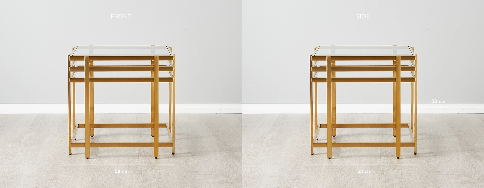 The Grazia Side Table exudes luxury with its art-deco-inspired design and high-quality stainless-steel frame. Its bold, defined borders and gleaming finish bring a touch of opulence to any space.