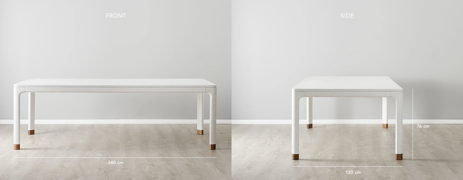 Embellish your grand gatherings and get-togethers with the Modern Rustic Charm of the Greta White Wooden Dining Table. This piece is masterfully crafted from premium Oak and veneer that gives it a rustic aesthetic, while its sophisticated white colours add sleek modern appeal. The Greta's spacious rectangular design can comfortably accommodate up to 8 people.