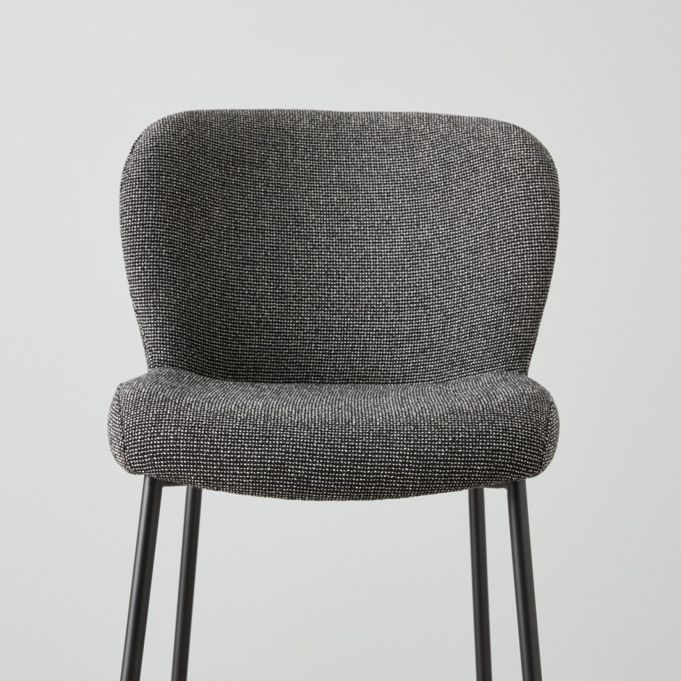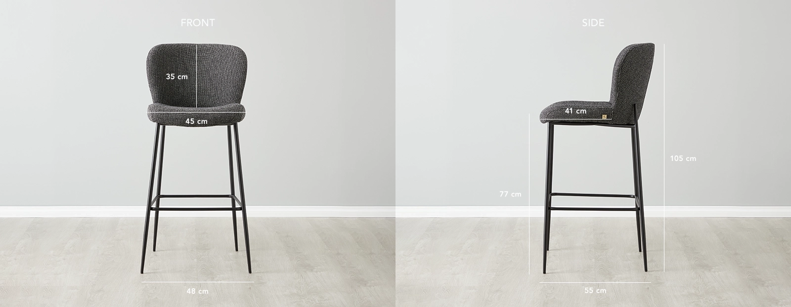 This fabric comes in a dapper black and white shade, which adds to the Hailey's sophistication. Four gorgeously crafted metal legs seamlessly flow from the seat and are joined below the base to provide a helpful footrest for lengthy conversations. These legs come in a luxe black shade that further accentuates their simplicity and beauty. The Hailey works best in a pair along with one of our stunning bar tables