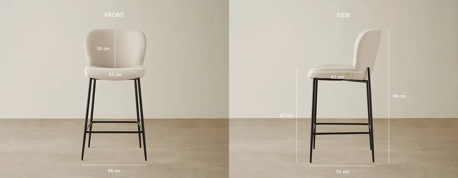 It stands on a black metal frame, joined together by a subtle footrest. The Hailey comes in a variety of colours and fabric.