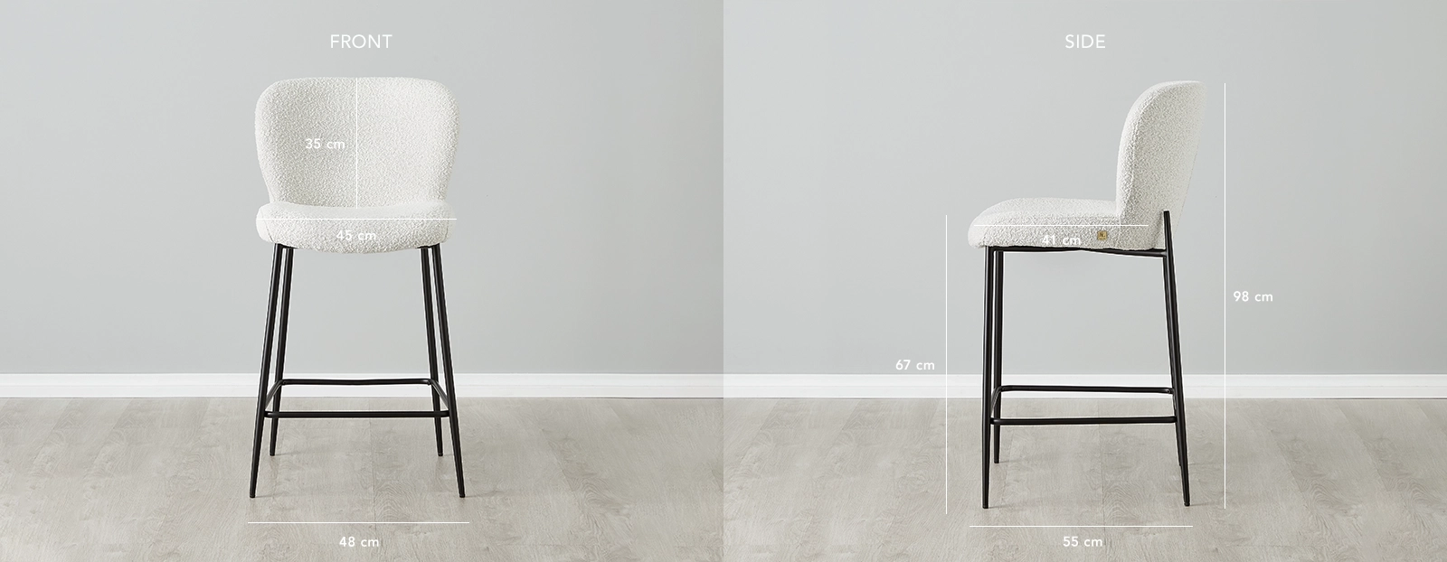 Rest comfortably as you enjoy meals and conversations with the Hailey Snow White Boucle Counter Stool. It boasts a highly stylish streamlined look that adds effortless sophistication to your dining area. Its overall design echoes minimalism as it favours simplicity over excess to create a note-worthy piece. Lounge comfortably on its gorgeously curved seat, padded with dense foam. Covering the entirety of the Haileys seat with its softness is an offering of high-quality Boucle fabric.
