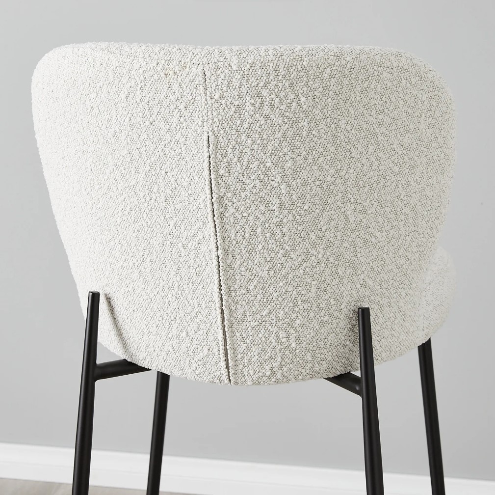 Hailey Snow White Boucle 67cm Counter Stool - Black Metal Legs