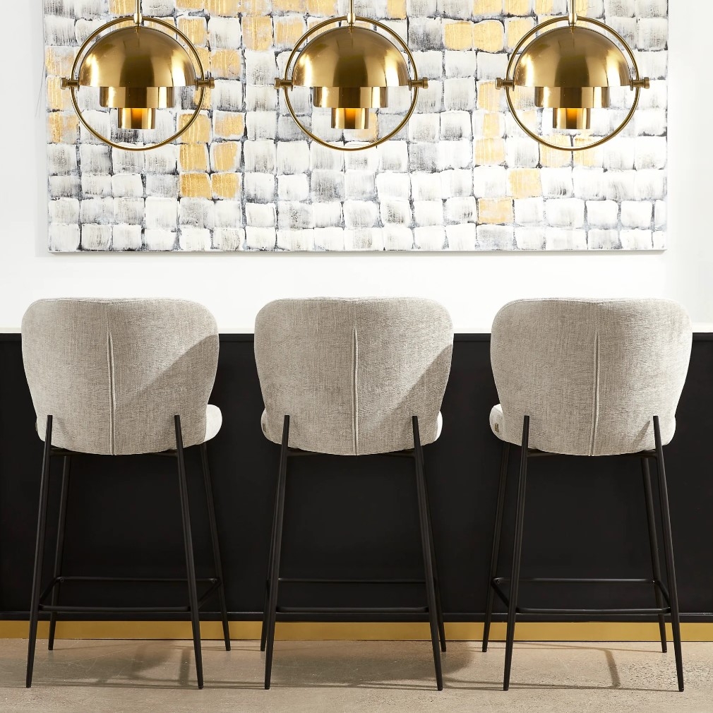 Hailey Vintage Grey Chenille Fabric 67cm Counter Stool - Black Metal LegsHailey Vintage Grey Fabric 67cm Counter Stool - Black Metal Legs