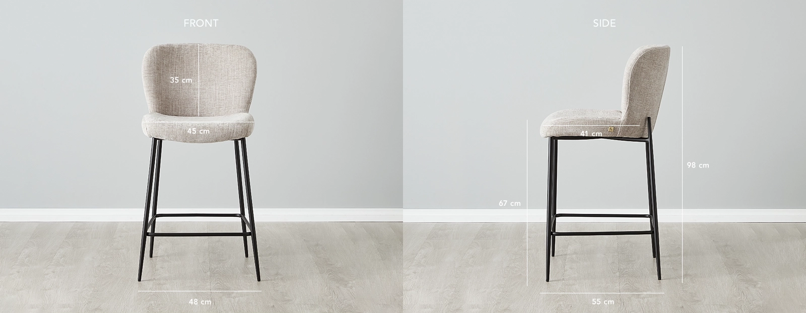 Rest comfortably as you enjoy meals and conversations with the Hailey Vintage Grey Fabric Counter Stool. It boasts a highly stylish streamlined look that adds effortless sophistication to your dining area. Its overall design echoes minimalism as it favours simplicity over excess to create a note-worthy piece. Lounge comfortably on its gorgeously curved seat, padded with dense foam. Covering the entirety of the Haileys seat with its rich texture is an offering of high-quality Woven fabric.