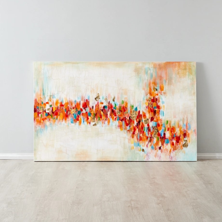 A stirring assembly of colours captivates the senses in our Halcyon Abstract Painting. It is an ambiguous piece with a beautiful abstract pattern and features rich and vivid colours with spattered hues of white blue red orange and blacks congregatting around an abstract pattern. that will surely elevate the mood of any space around the home.