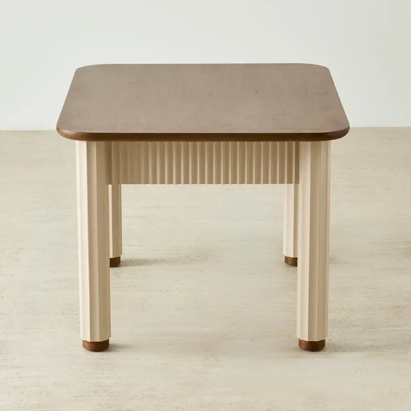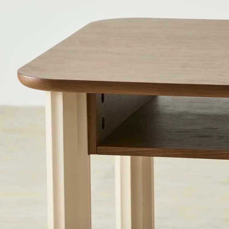 A smooth wood top and legs bring calm color and charm to playtime. The rounded edges keep things safe, while the handy shelf below is ready for puzzles, crayons, or books.