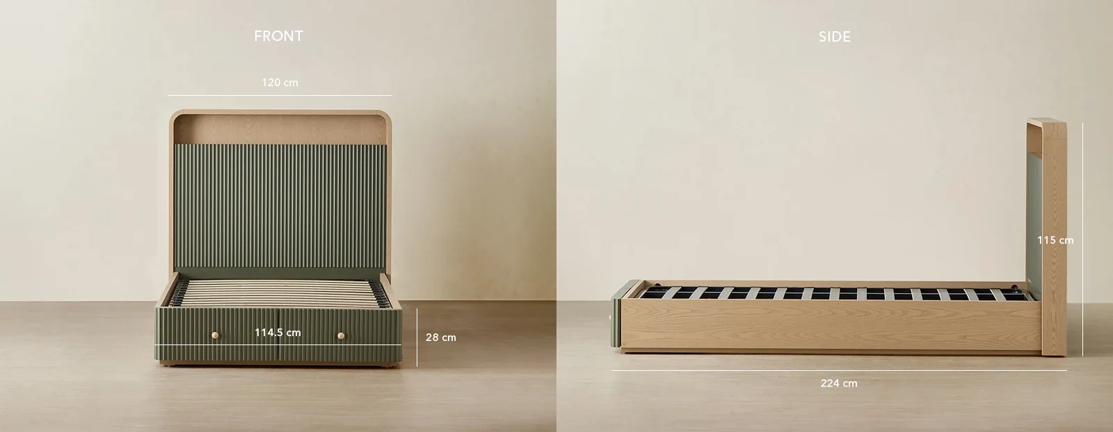 Two built-in drawers provide easy storage for toys, clothes, or books, helping keep the room tidy. Simple, durable, and practical, it’s a bed that works for both sleep and play.