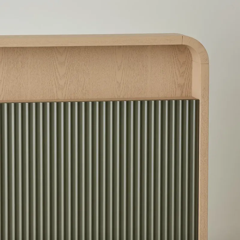 The Harper King Bed is designed to give your child extra space to stretch out while still fitting neatly into a compact room. The sturdy frame includes a rounded headboard with grooved panels in calming sage green.