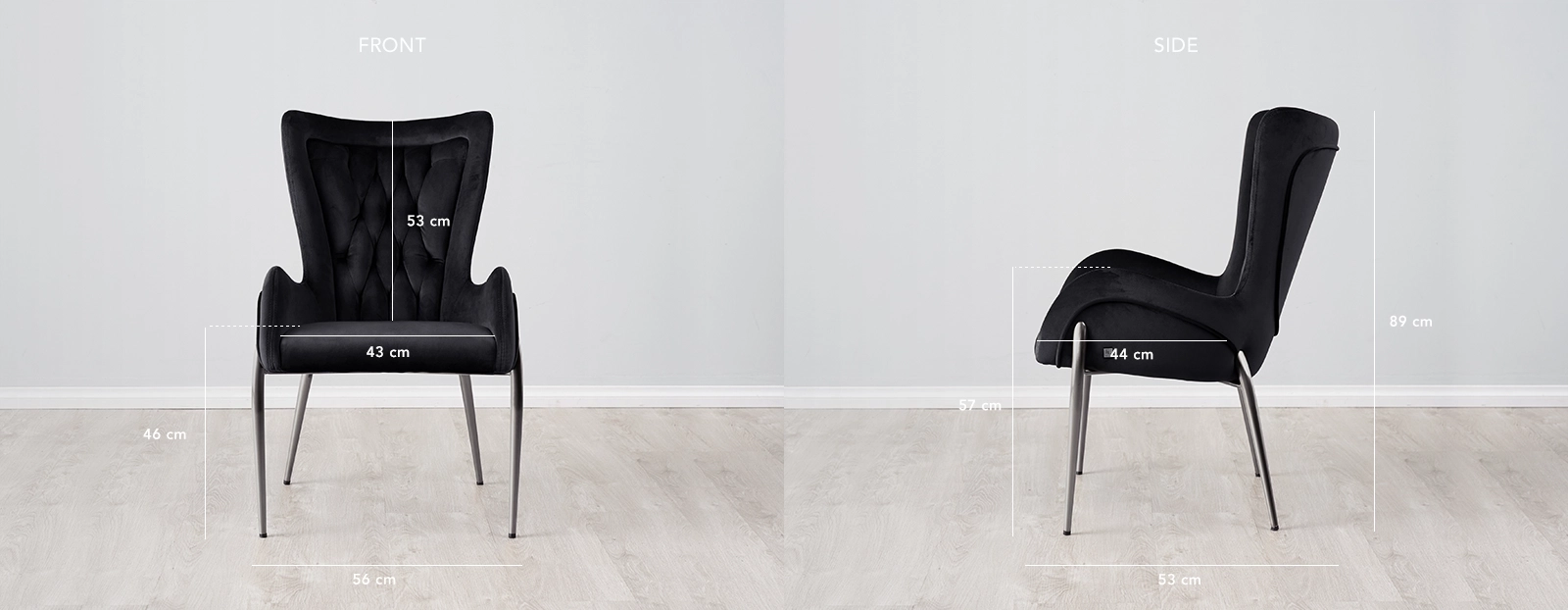 Experience the epitome of style and sophistication with the Henry Black Velvet Dining Chair. Drawing inspiration from classic wingback and armchair designs, this exceptional piece combines timeless elegance with contemporary flair, making a captivating statement in any space. The defining feature of the Henry Chair is its distinct wings that gracefully extend from each side of the back frame. These wings not only create a sense of grandeur but also provide a cozy enclosure that invites you to relax and unwind.