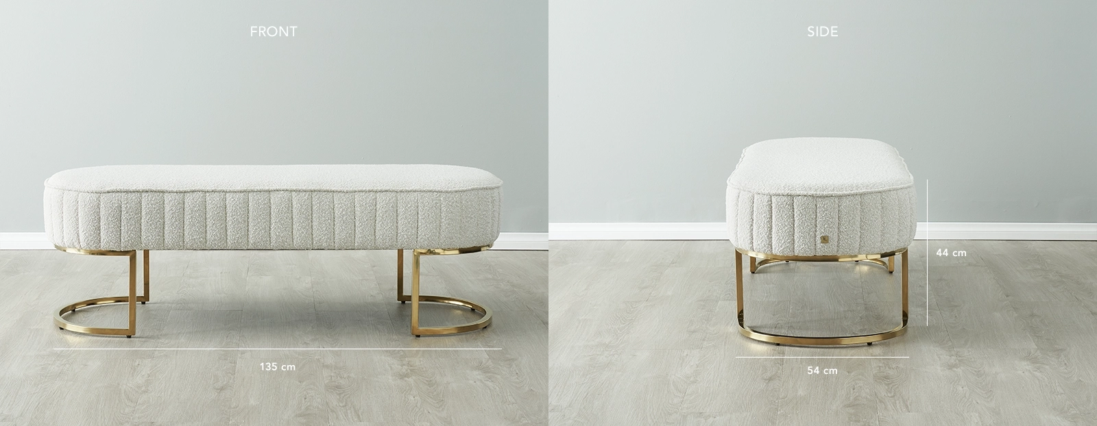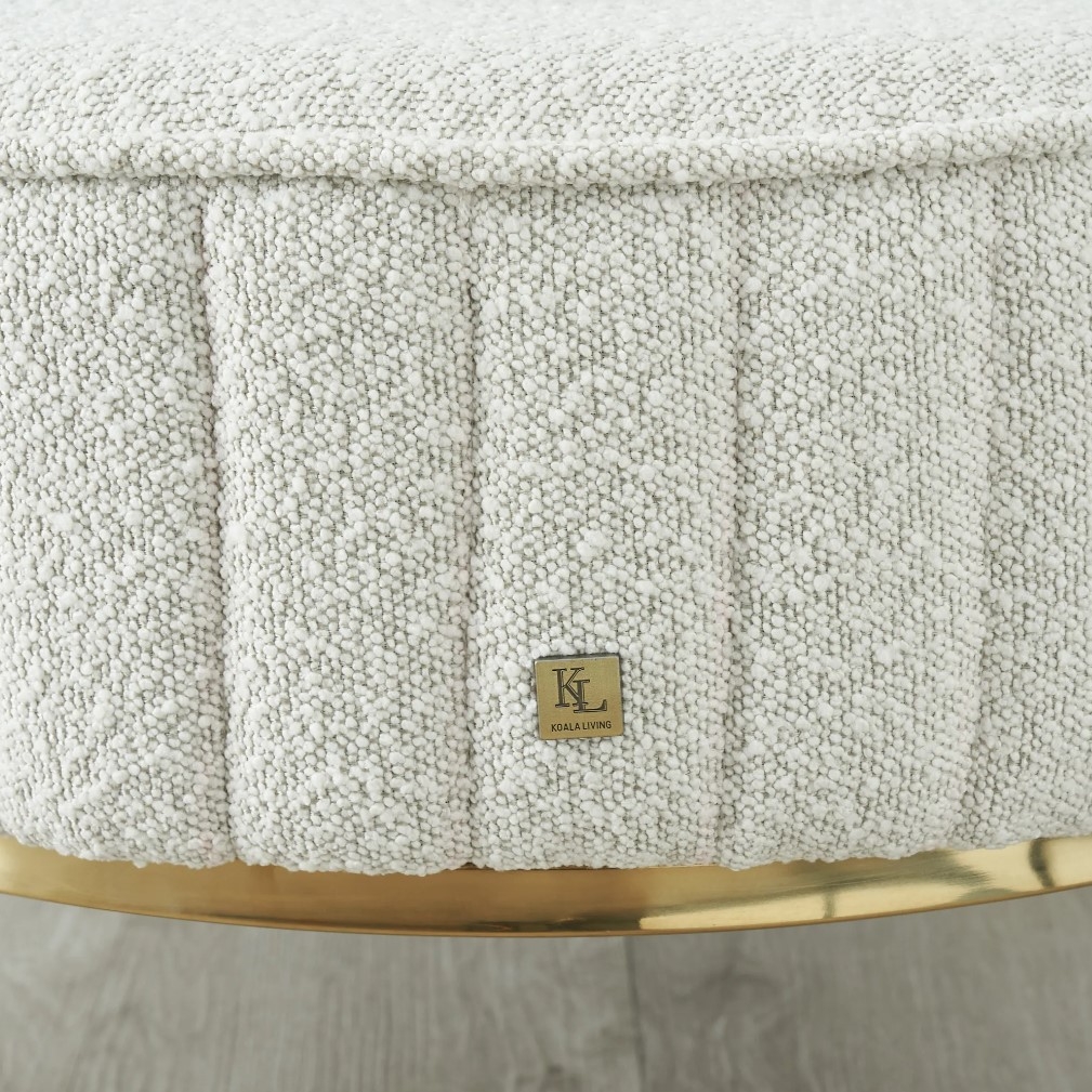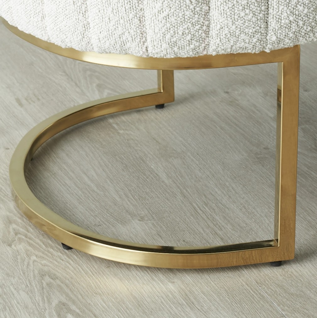 Really stylish ottoman. beautiful Boucle fabric and the gold legs add to the whole stylish upmarket feel.