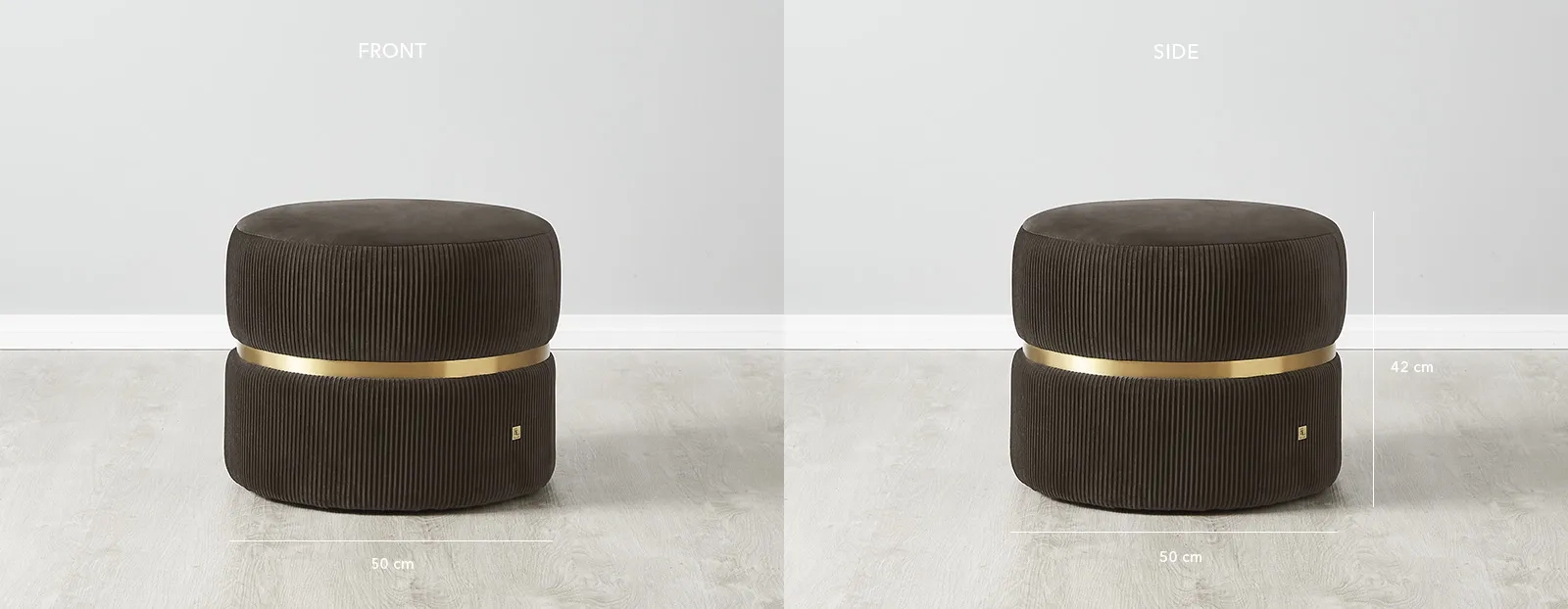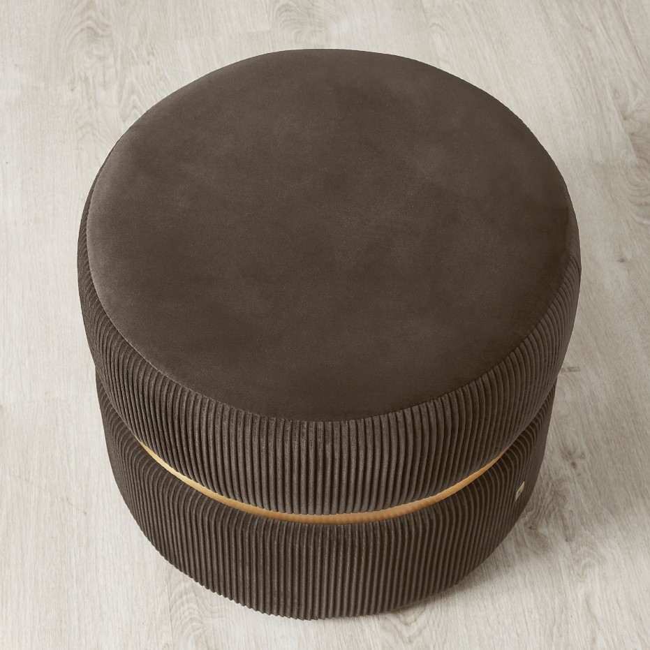 The Hollist Ottoman is an exquisite example of how cylindrical-shaped ottomans can revolutionize the aesthetics and functionality of any living space. They offer a unique blend of practicality and style, serving as both comfortable seating options and stylish decor pieces. Draped in high-quality velvet, the Hollist exudes luxury and comfort. The velvet covering is not just a tactile delight but also a visual treat, adding a layer of rich texture and depth to the piece.