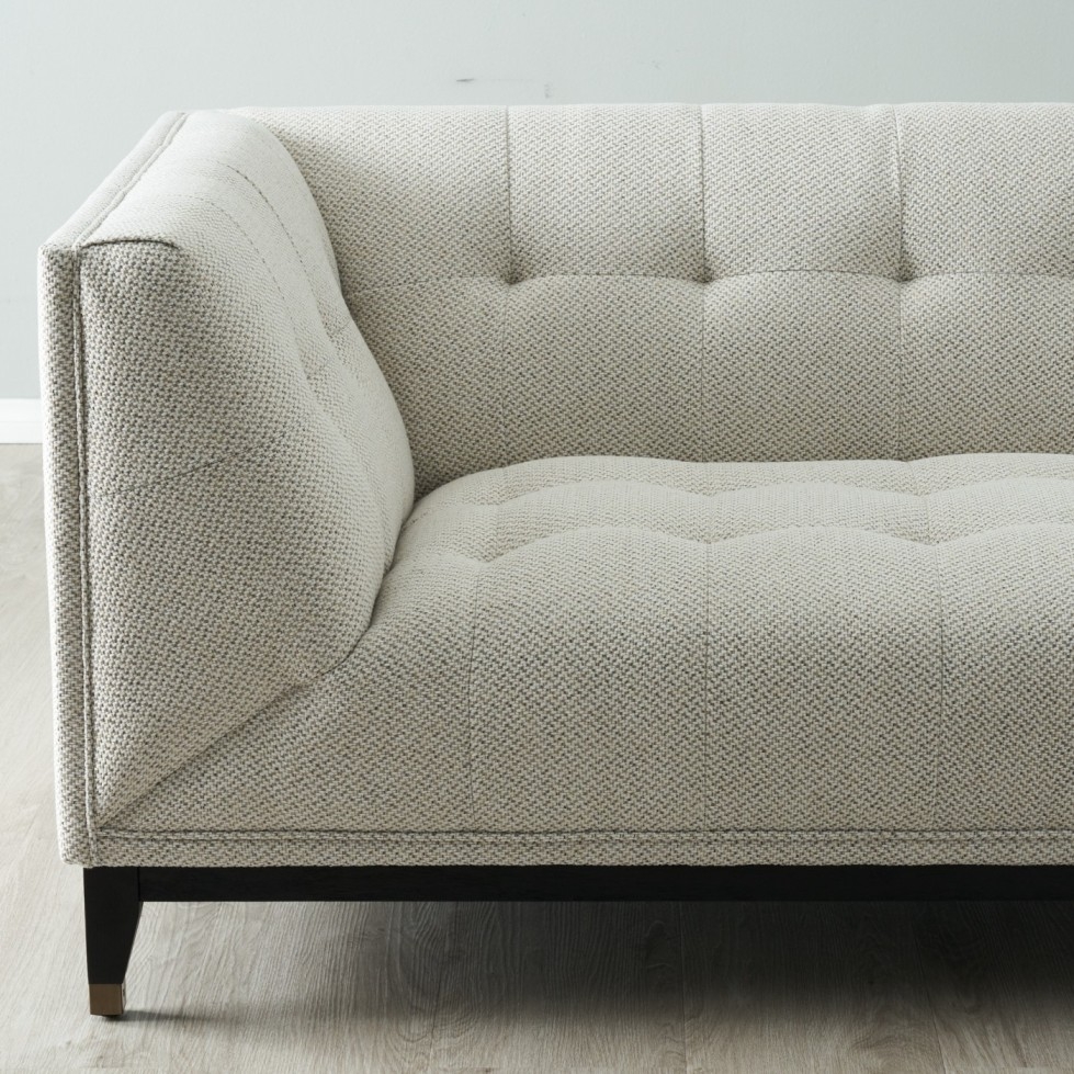 Button tufting throughout the Humphrey enhances its plush look and debonair aesthetic. Its black wooden legs provide sturdy support and complement its classic design.
