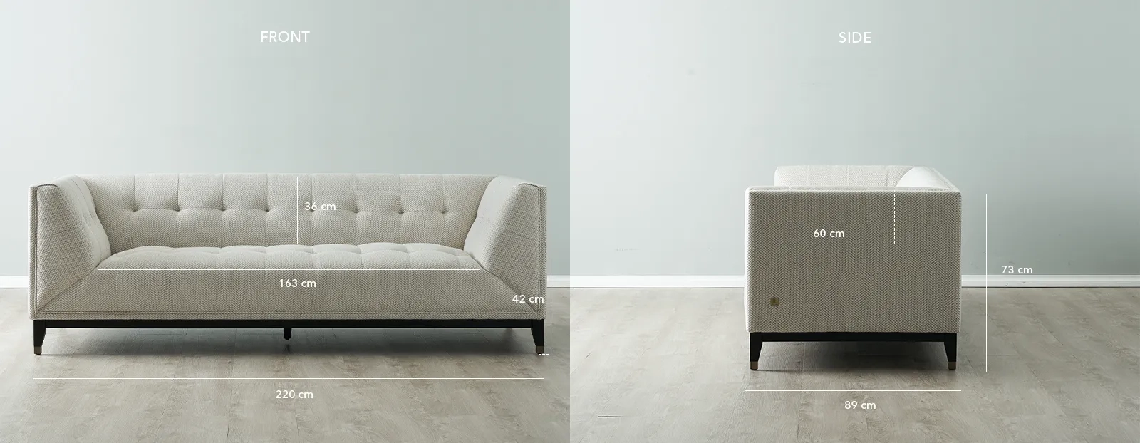 The Humphrey Ash Grey Fabric 3-Seater Sofa infuses your home with mid-century modern charm through its classic tuxedo-inspired design and rich colours.
