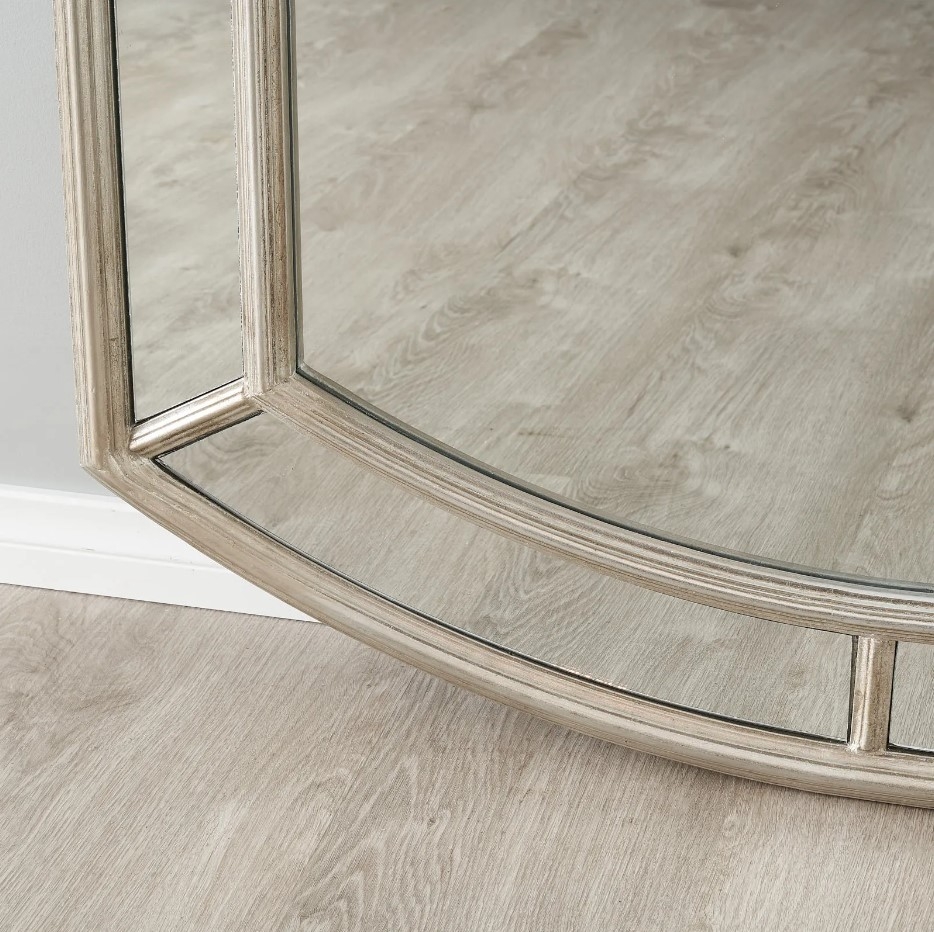With its arch shape and crisp geometric lines, this mirror is an exemplary piece that can anchor a room or act as an elegant complement to other decor elements. The structure is sturdy yet exudes a delicate charm, reflecting a blend of strength and grace. This mirror's stature and reflective quality can make a space feel more expansive, inviting light into every corner and creating an illusion of depth.