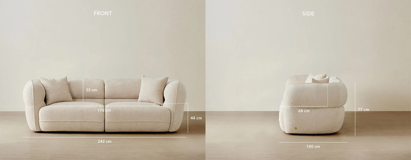 The Isabella 2-Piece Modular Sofa pairs plush comfort with modern curves. Its modular design makes it easy to adapt for lounging, reading, or cosy gatherings.