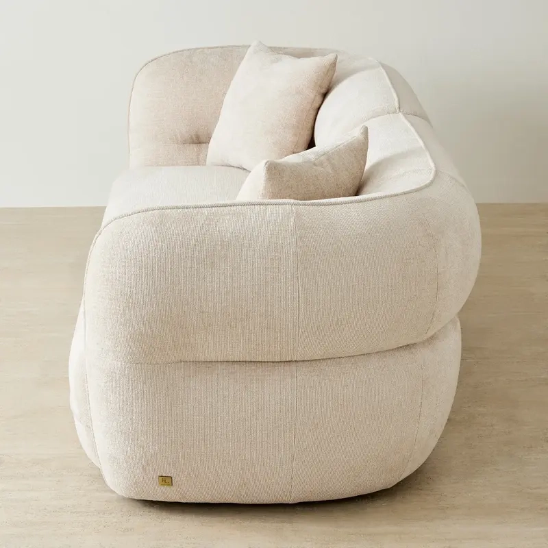 The cream fabric keeps the look clean, stylish, and versatile. Matching cushions add comfort while completing the form.