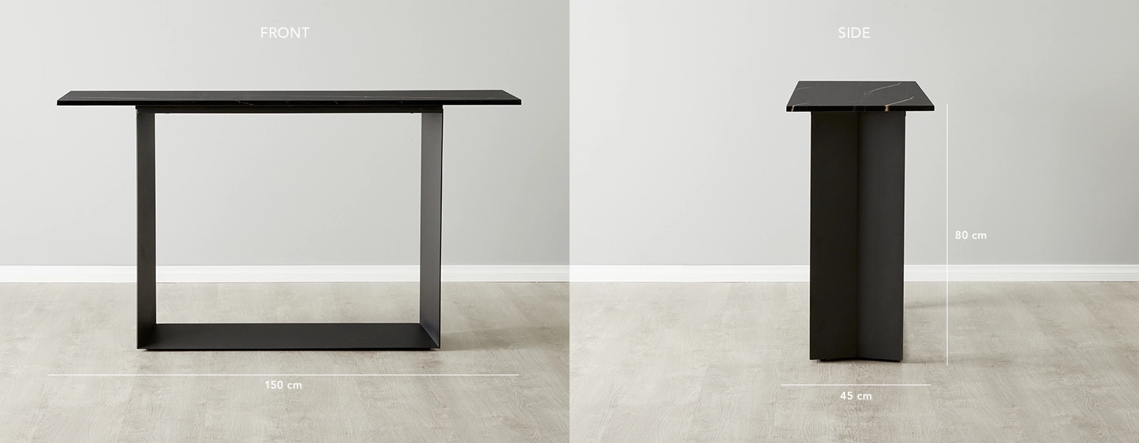 The black frame complements the marble-look top with a balanced look. It also offers reliable support and a modern finish to the overall design.