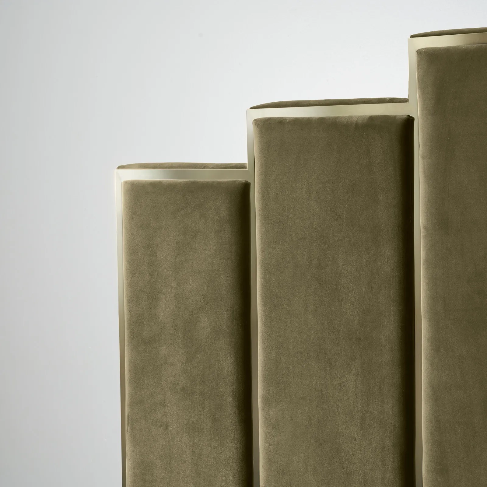 Jacques Olive Green Velvet King Bed - Brushed Champagne Gold Frame