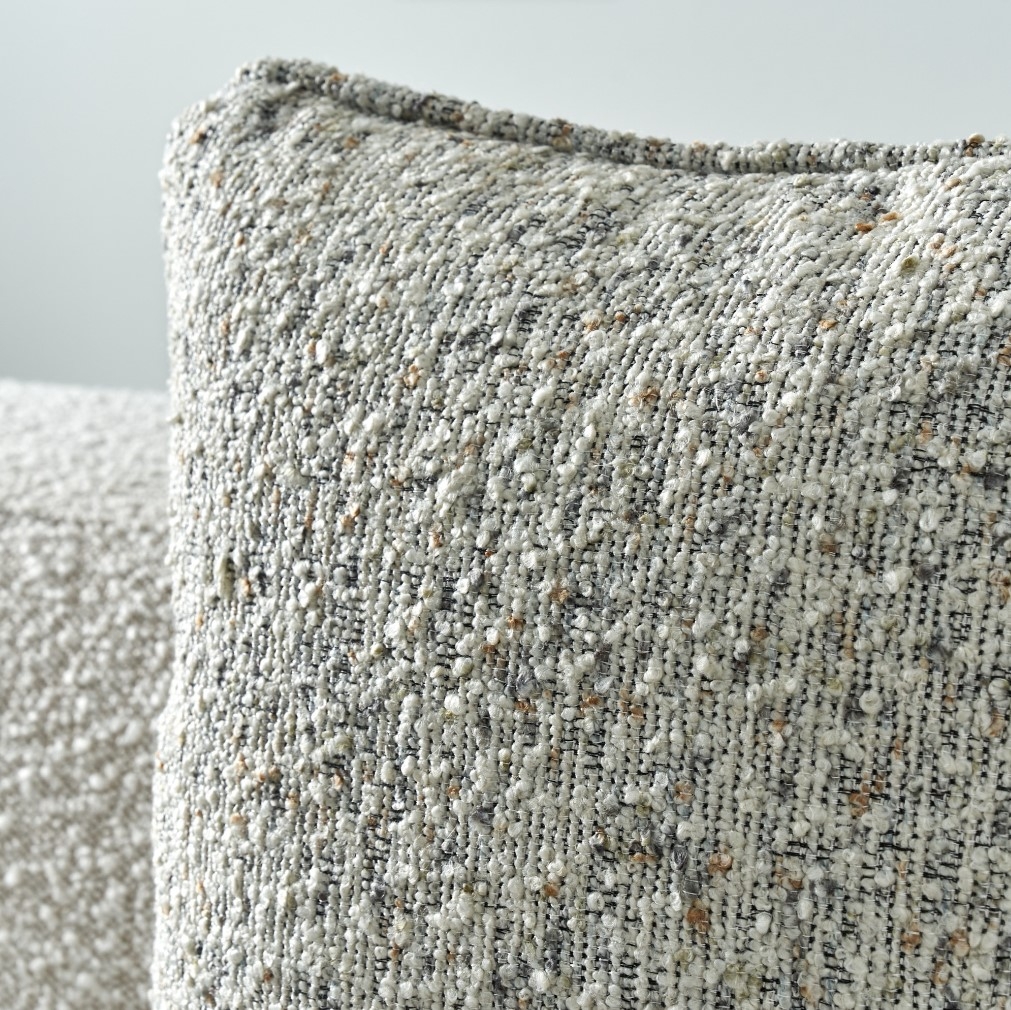 What truly sets the Jemma Cushion apart is its bouclé fabric covering. For the uninitiated, bouclé is a textured fabric known for its looped threads which create a plush, tactile surface that's not only soft to the touch but also incredibly inviting. The bouclé fabric of the Jemma Cushion features a palette reminiscent of terrazzo, a delightful mingling of colors and speckles.