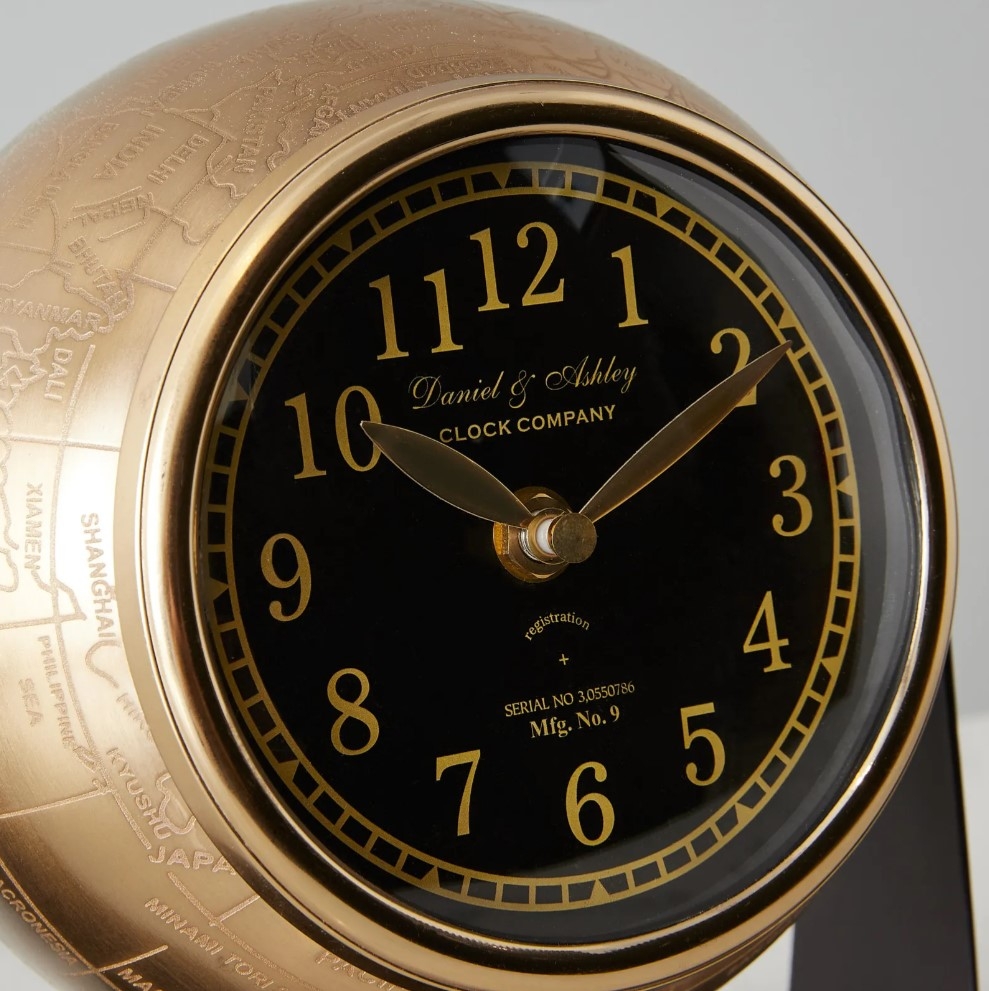 But it's the body of the clock that truly captivates. Adorned with a meticulously detailed pattern of the globe, continents and countries emerge in delicate relief, reminding us of the vast world beyond our walls. Whether it's for an avid traveler or someone with an eye for exceptional design, the Jiffy Matte Antique Brass Clock is more than just a timepiece—it's a statement of elegance and adventure.
