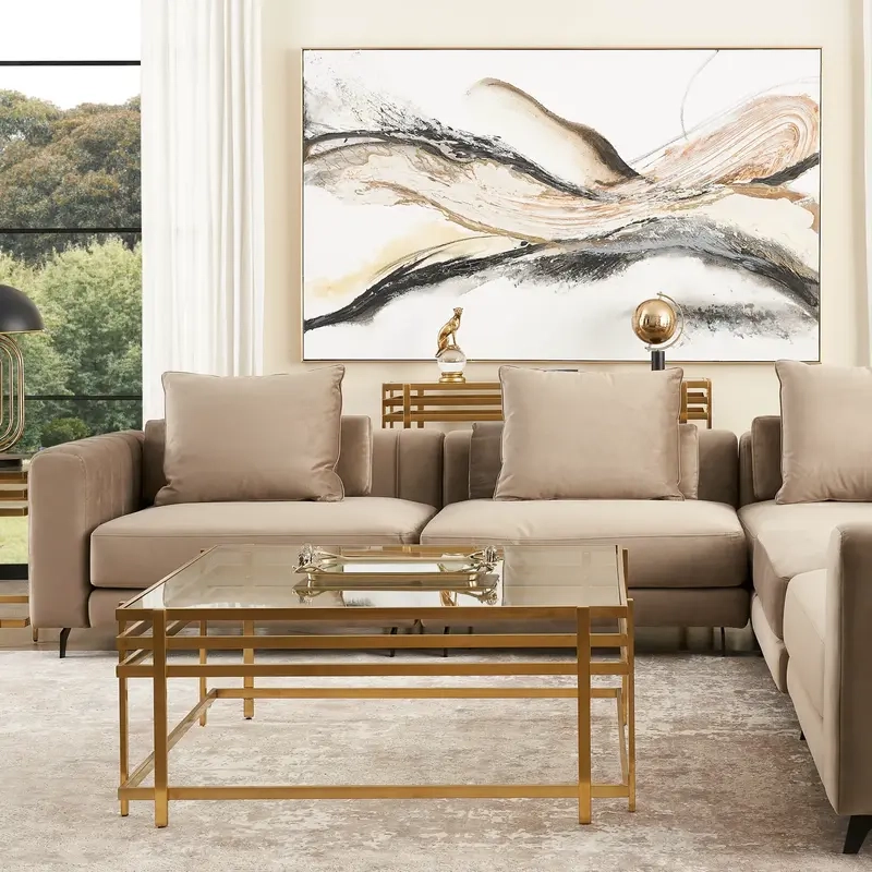 Upholstered in smooth Beige Velvet, this corner module showcases a tuxedo-inspired silhouette with refined lines and plush cushioning. It completes your arrangement with softness, structure, and a warm, understated charm.