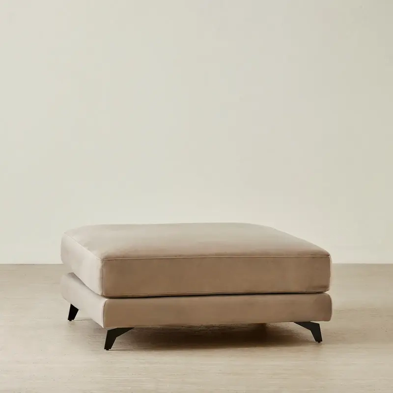 The Jordan Velvet Ottoman offers a minimalist design that suits any living space. Its spacious surface functions as extra seating or a footrest.