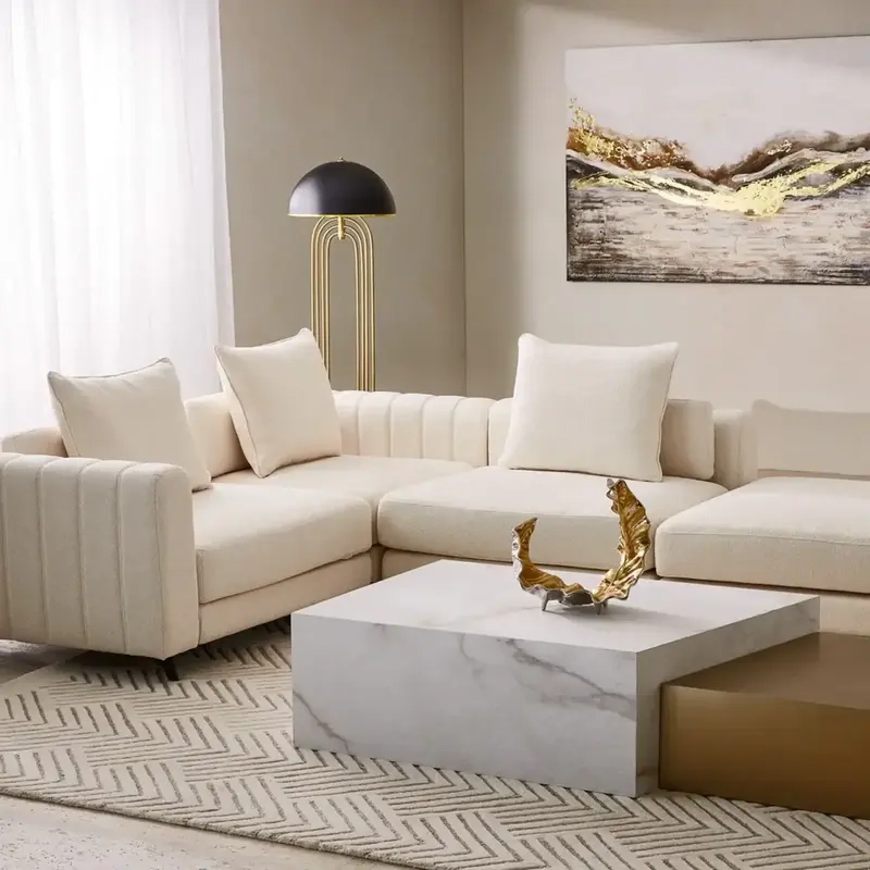 The Jordan 3 piece modular Sofa offers a perfect balance of elegance and adaptability. Its modular design allows for flexible arrangements, making it ideal for both compact and spacious living areas.