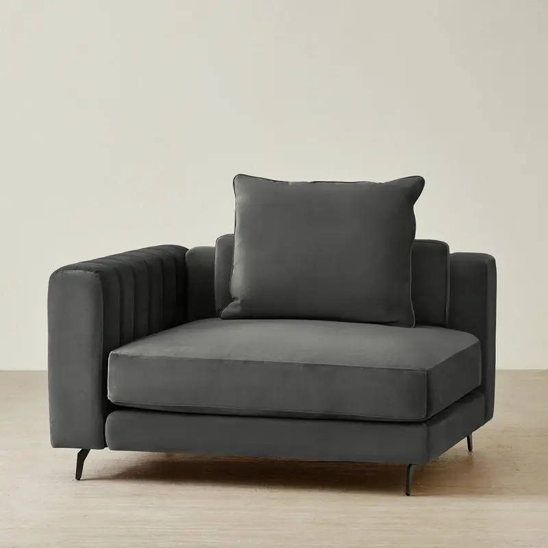 Jordan Charcoal Velvet Corner Sofa - 1.5 Seater Left Arm