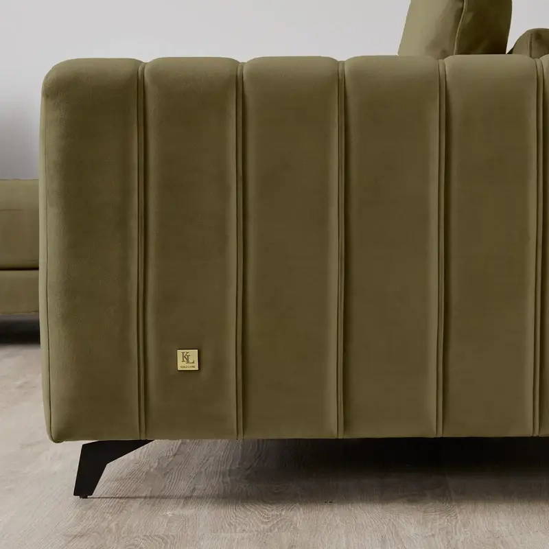 The Jordan Olive Green Velvet Corner Sofa brings versatility and elegance to your living space. Its modular design allows you to rearrange the sections to suit any occasion, whether it's a cosy night in or hosting guests.