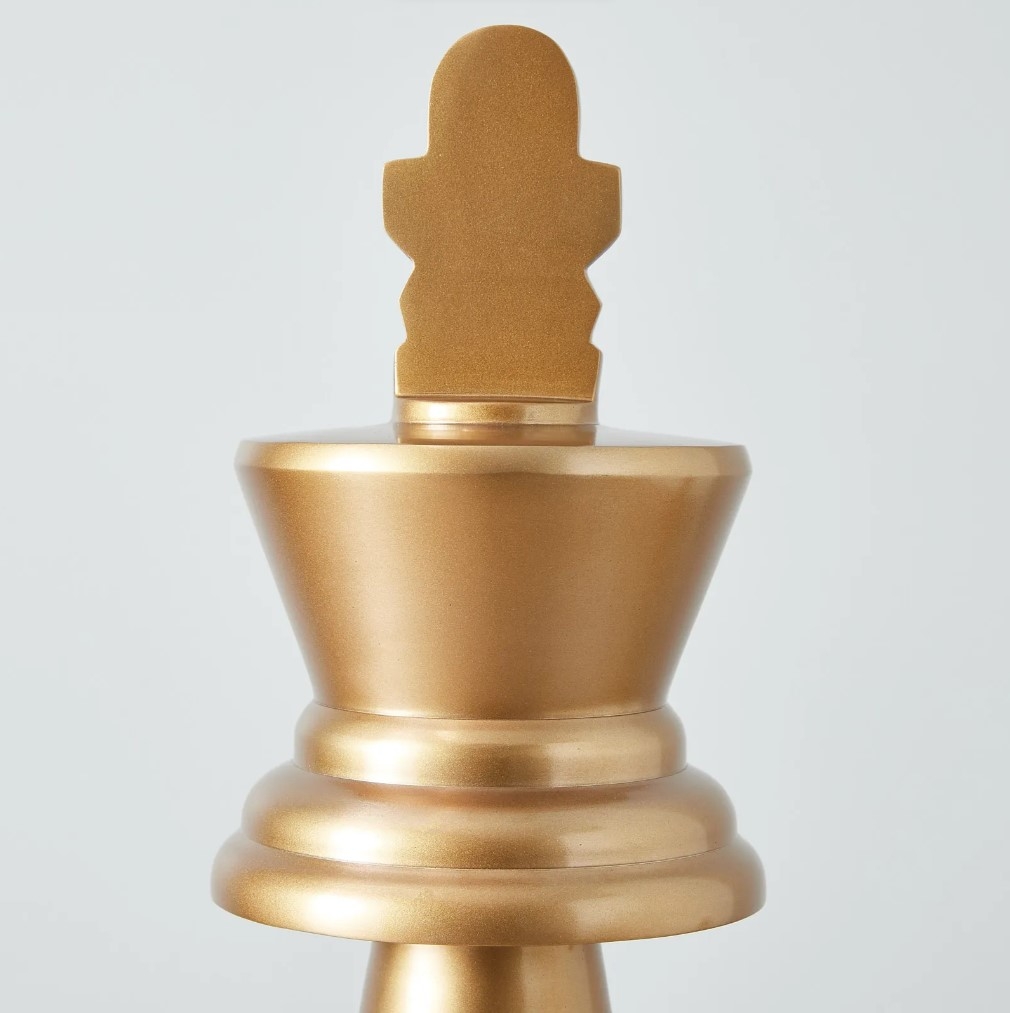 The King Chess Piece in Brass Colour Metal Decorative is a magnificent tribute to the timeless game of chess. It is an oversized depiction of the most iconic piece of the game - the King. Masterfully crafted with meticulous attention to detail, this decorative piece glows with a brass-colored lustre, radiating a sense of luxury and adding warmth and color to your space.