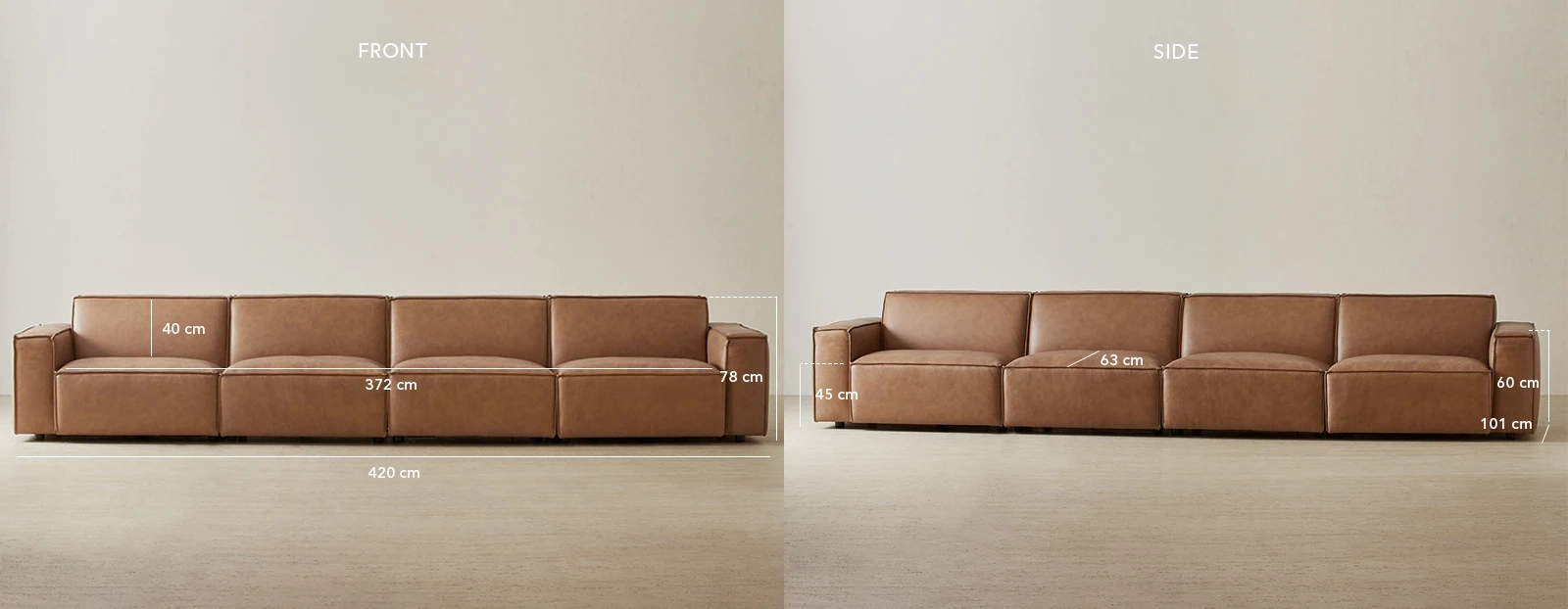 The Lainey is modular living, streamlined. Crafted with genuine medium tan leather, the Lainey brings clean lines and thoughtful flexibility to any space.