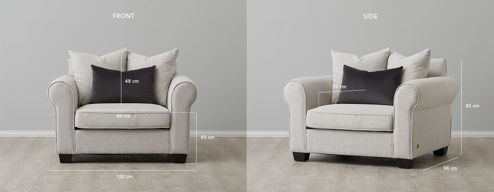 Paying homage to classics, the Laurie Ash Grey Fabric Single Seat Sofa is crafted in a traditional style that echoes the established Lawson design. It is draped in ash grey woven fabric, adding to its classic appeal.