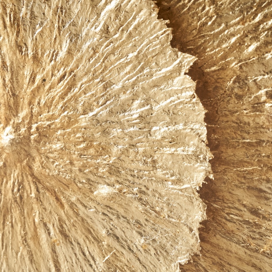 The artistry involved weaves together these humble materials with a stroke of brilliance, resulting in a piece that radiates with an innate elegance and a bright, uplifting presence. It stands not just as a piece of wall art but as a source of light and joy, a focal point that draws the eye and elevates the spirit.