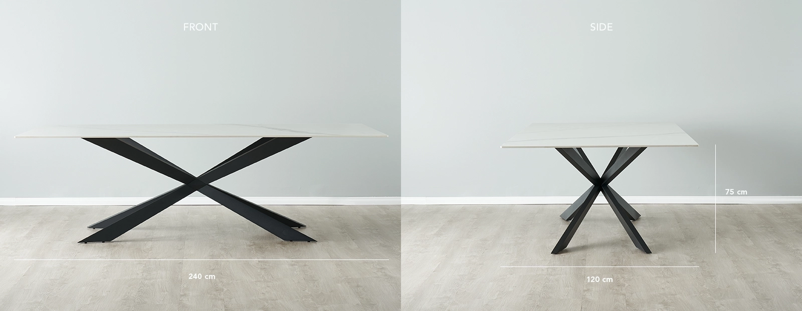 A cacophony of black-coloured stainless steel converges along the Lena's underside, revealing table legs in striking geometric form. The white sintered stone and dark iron come together to create a modern aesthetic that makes the Lena White Sintered Stone Dining Table a must-have for any modern home. Best paired with an assembly of our dining chairs along with a gorgeous floor rug.
