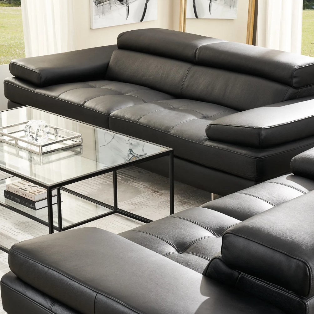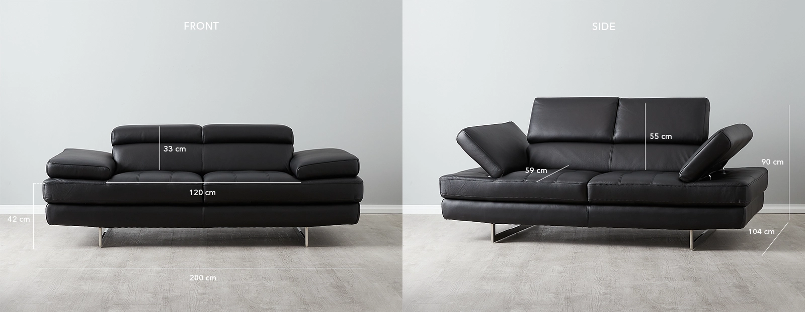 The Lennox Black Leather 2-Seater Sofa brings modern luxury to your living room with its comfortable seats and contemporary features, highlighted by its genuine leather upholstery.