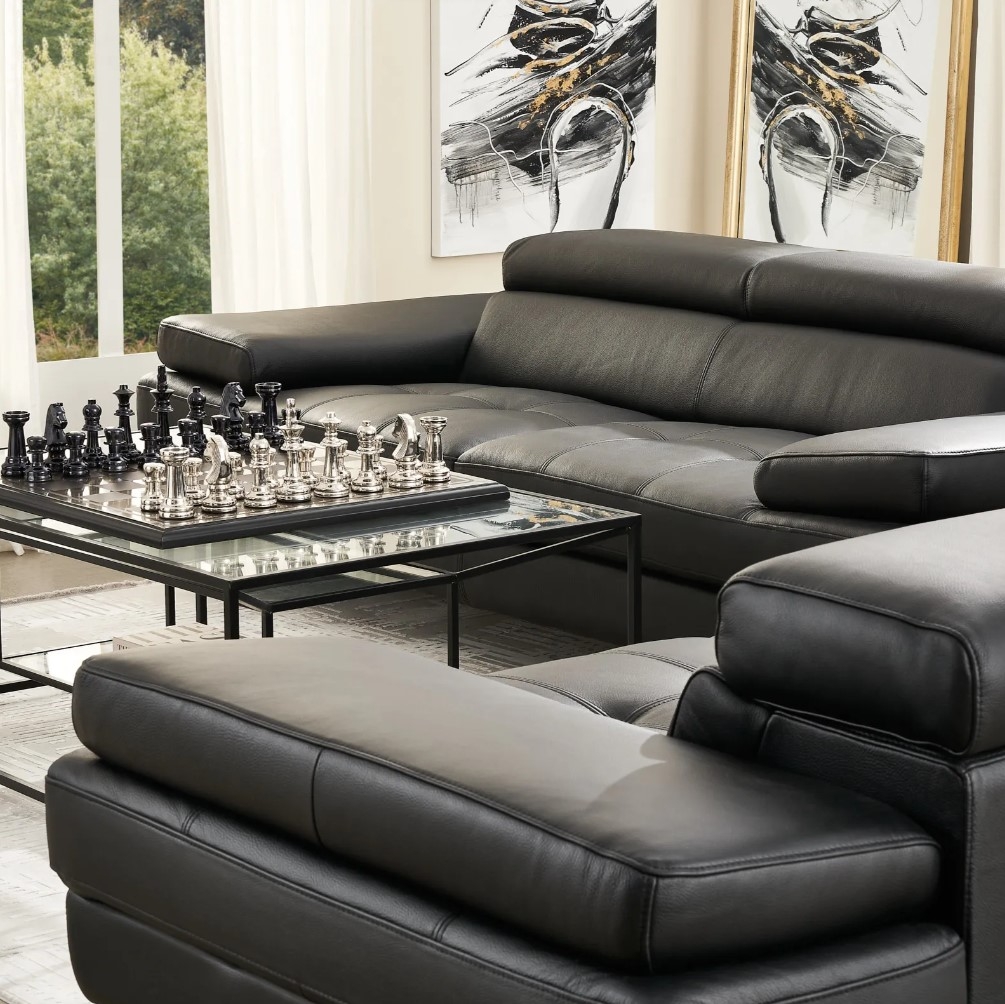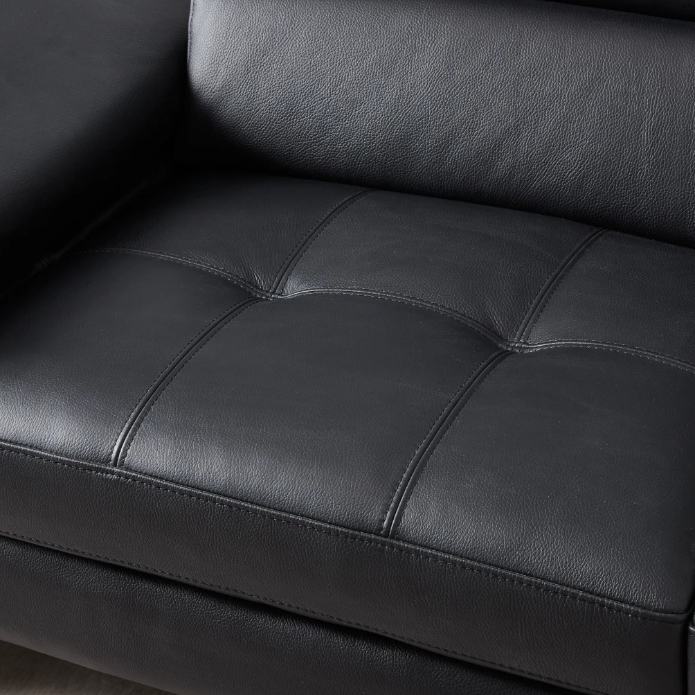 The Lennox Black Leather 3-Seater Sofa brings modern luxury to your living room with its comfortable seats and contemporary features, highlighted by its genuine black leather upholstery.