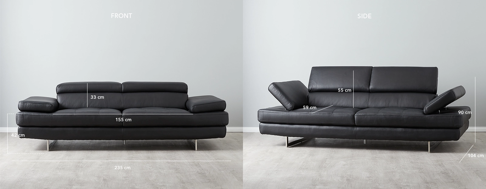 Its adjustable headrests offer personalized comfort for all. Wide seats filled with high-density foam ensure optimal relaxation. The adjustable side sections provide extra seating space when needed.