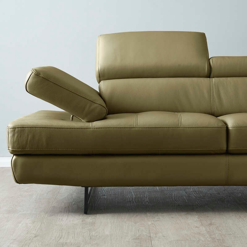 The adjustable headrests offer personalised comfort, while the wide seats filled with high-density foam provide optimal relaxation. Black legs add a sleek contrast, completing the contemporary look of the sofa.
