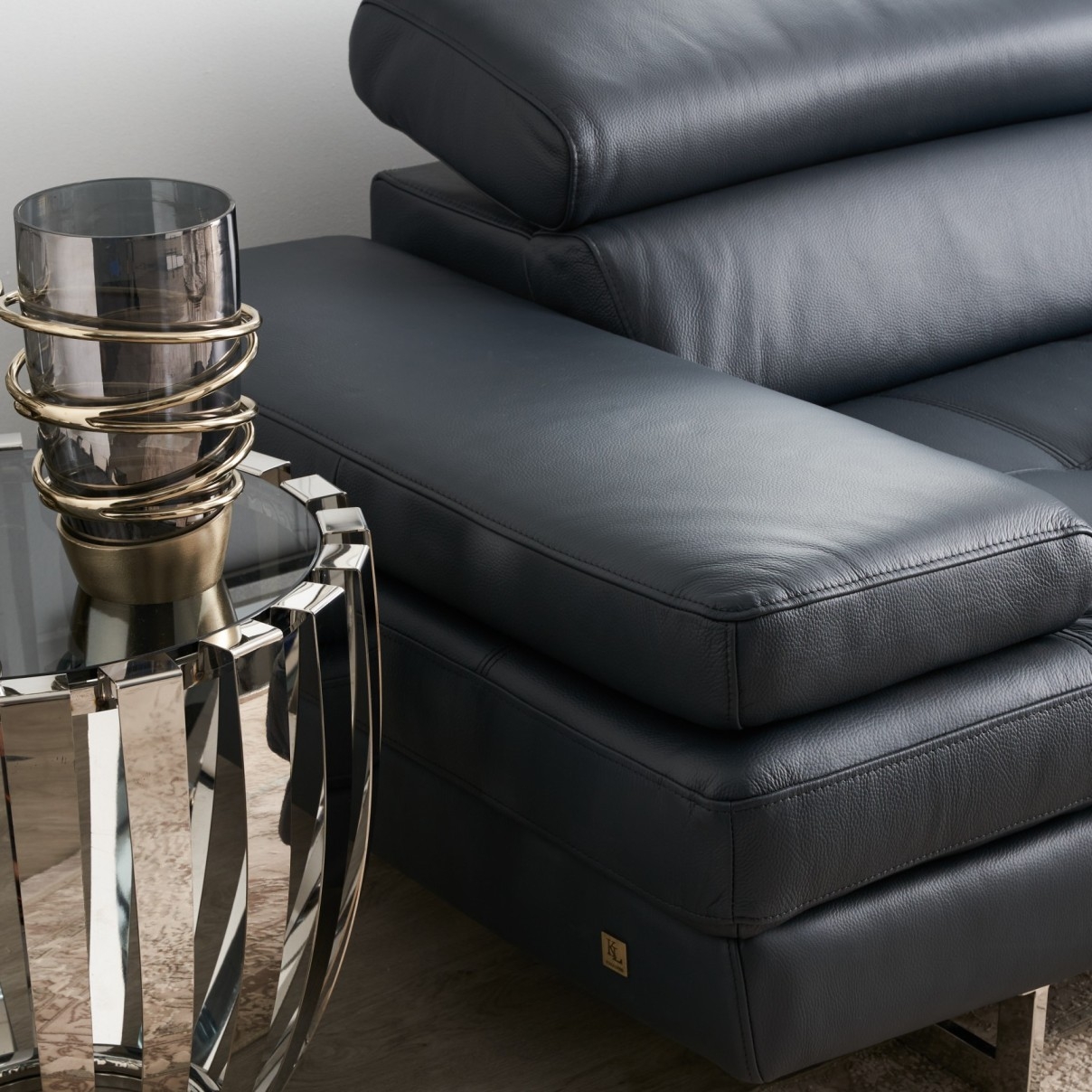 The Lennox Night Blue Leather 2-Seater Sofa brings modern luxury to your living room with its comfortable seats and contemporary features, highlighted by its genuine leather upholstery.