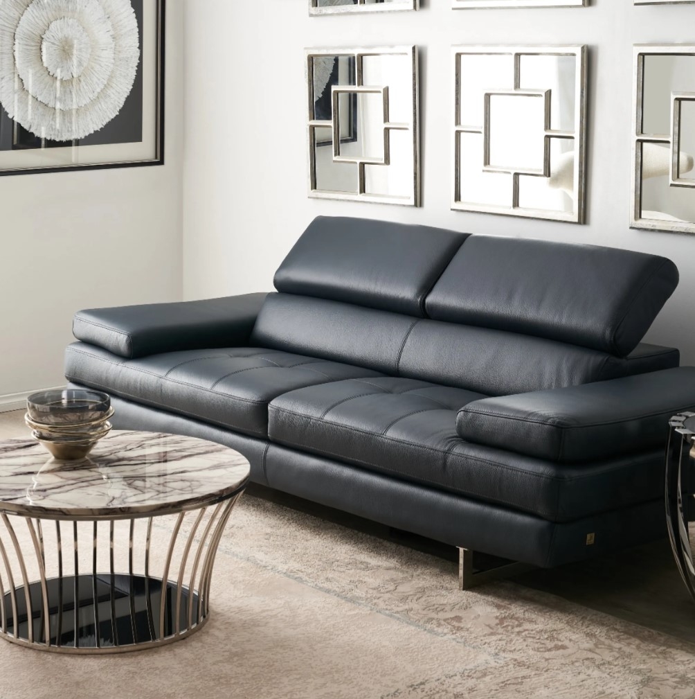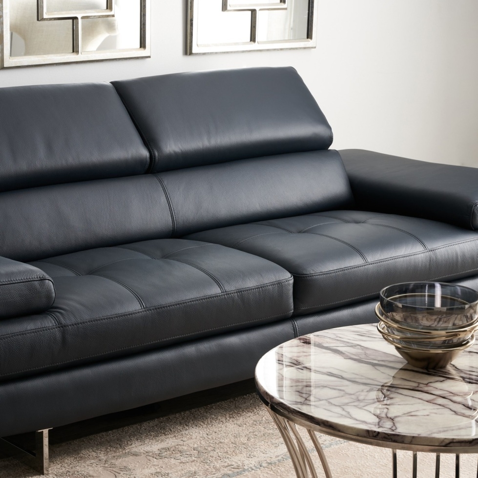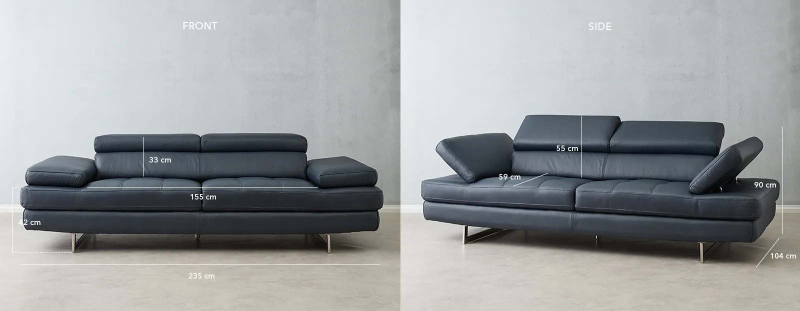 The Lennox Night Blue 3-Seater Sofa brings modern luxury to your living room with its comfortable seats and contemporary features, highlighted by its genuine leather upholstery.