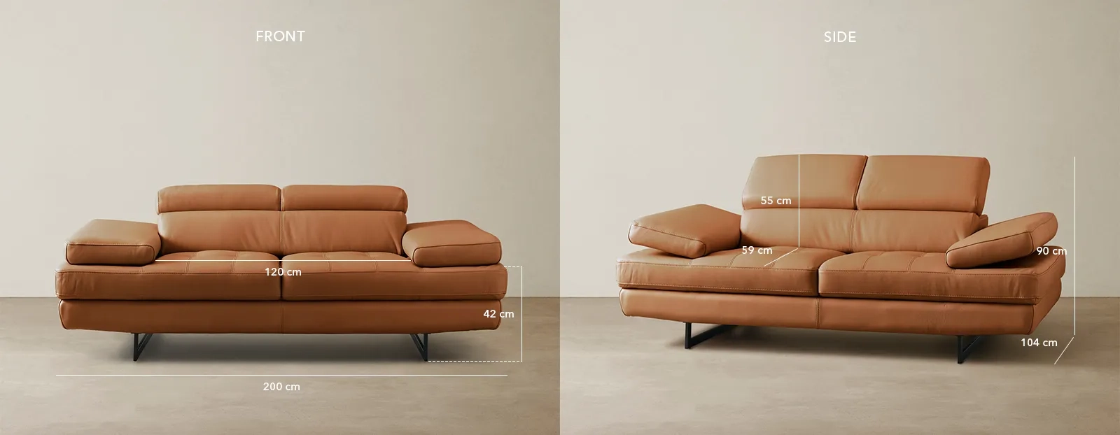 The adjustable headrests provide personalised comfort, while the wide seats filled with high-density foam ensure optimal relaxation. Black legs offer a stylish contrast, completing the modern look of the sofa.