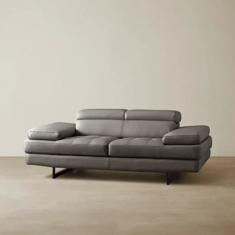 The Lennox Warm Stone Grey Leather 2-Seater Sofa brings modern luxury to your living room with its sleek design and comfortable seating, highlighted by its genuine leather upholstery.