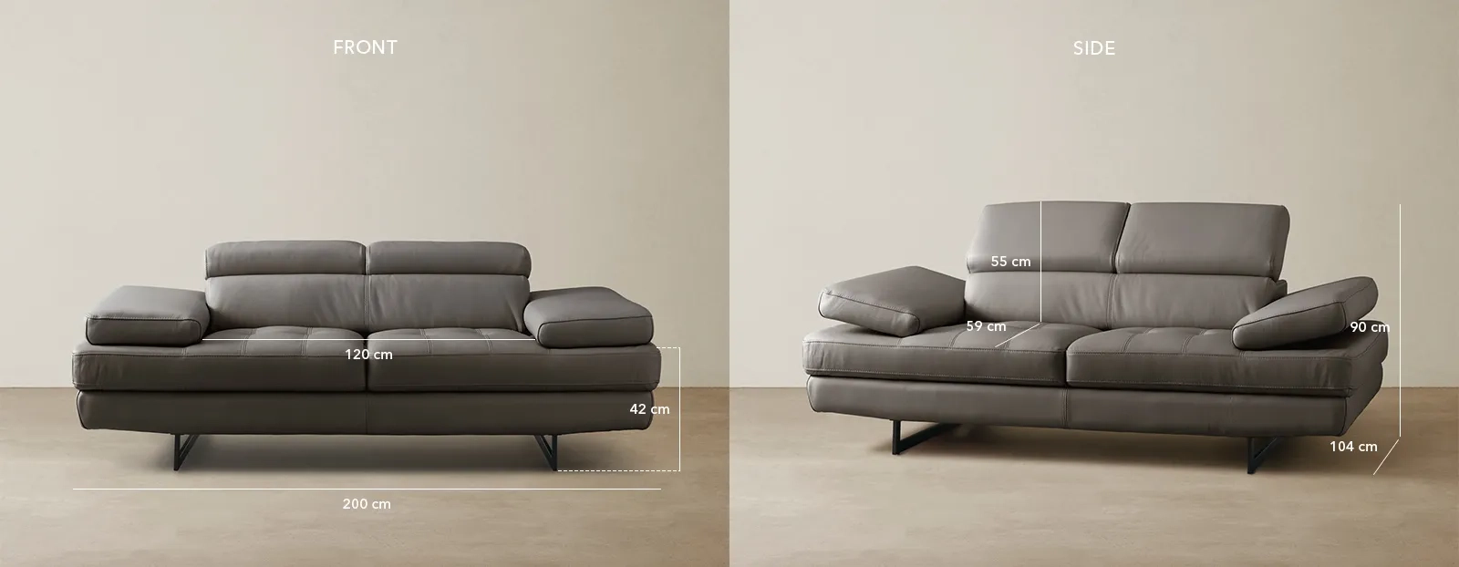 The adjustable headrests provide personalised comfort, while the wide seats filled with high-density foam ensure optimal relaxation. Black legs offer a stylish contrast, completing the contemporary look of the sofa.