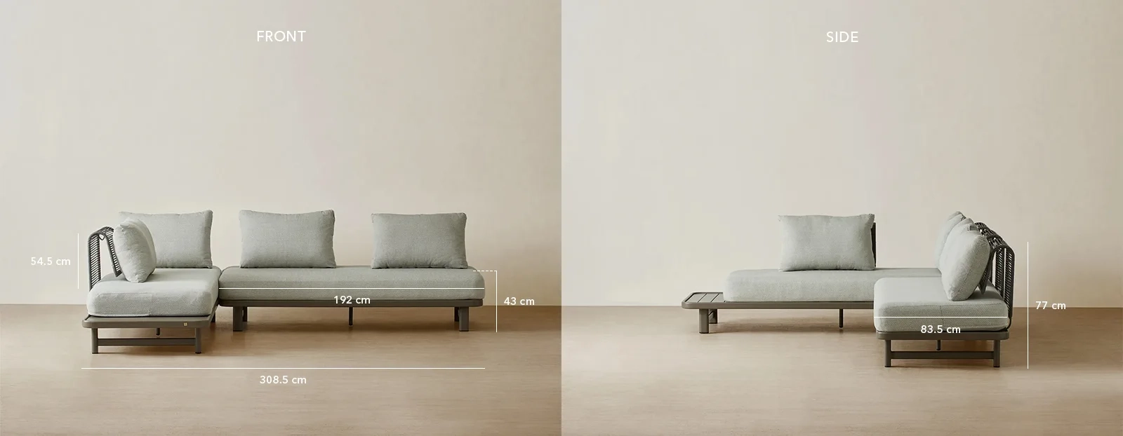 Its modular style allows for flexible seating arrangements, whether used as a corner or spread apart. Built for versatility, it works equally well for lounging, entertaining, or everyday use in outdoor spaces.