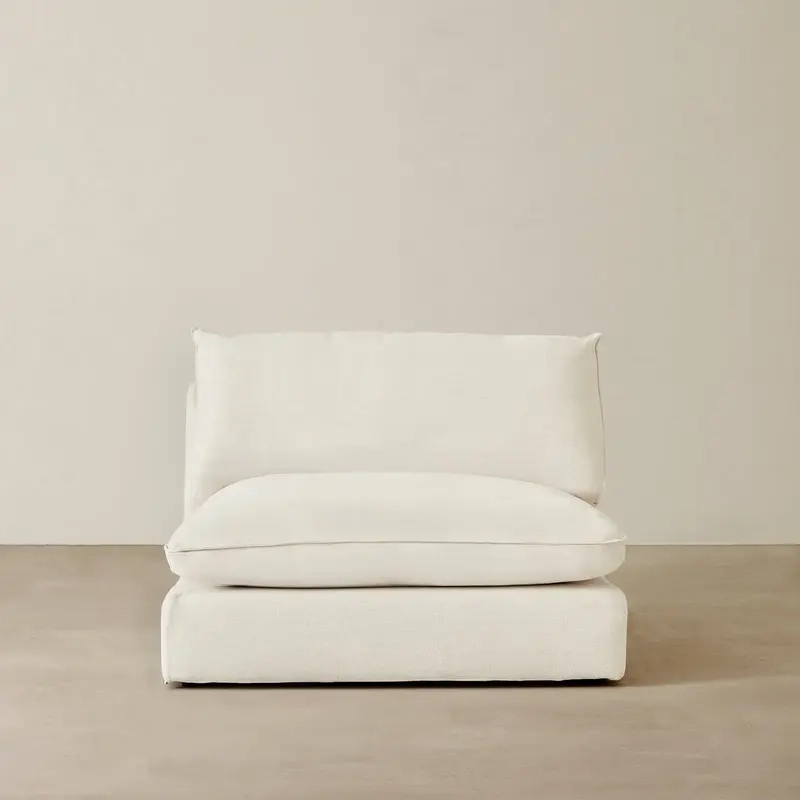 The Macie Armless Sofa offers a streamlined blend of comfort and versatility in a modern silhouette. Upholstered in chiffon white fabric, it brings a light, airy presence to any space.