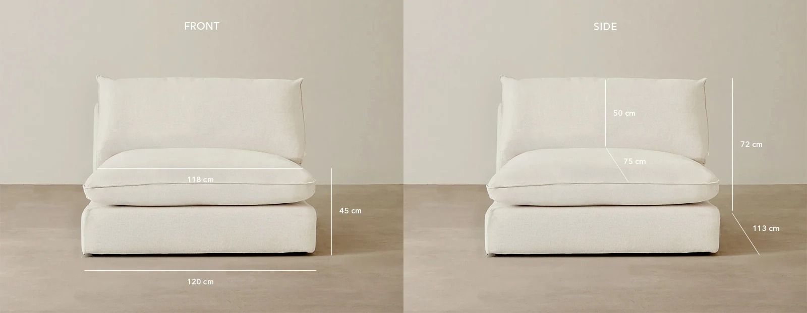 Designed to connect effortlessly with other modular pieces, it works as a centrepiece or extension within your layout. Its armless profile creates an open feel, perfect for flexible, customisable arrangements.