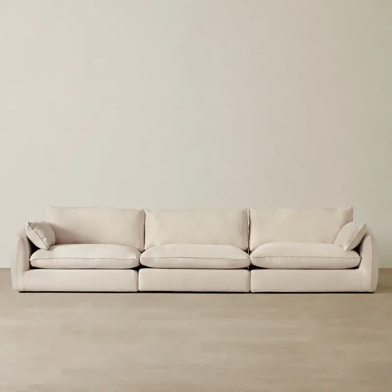 The Macie 3 Piece Modular Sofa offers a simple yet stylish seating solution with a focus on comfort and flexibility. Upholstered in cream oatmeal fabric, it brings a soft, refreshing presence to any space.