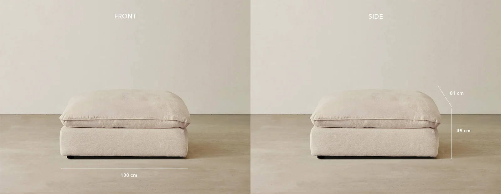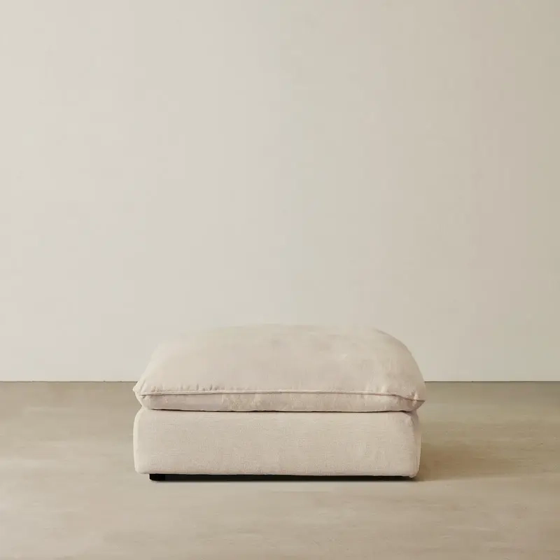 The Macie Lite Ottoman in Cream Oatmeal brings soft texture and flexibility. Its cushioned top offers comfort whether used as a seat, footrest, or extension of the modular sofa.