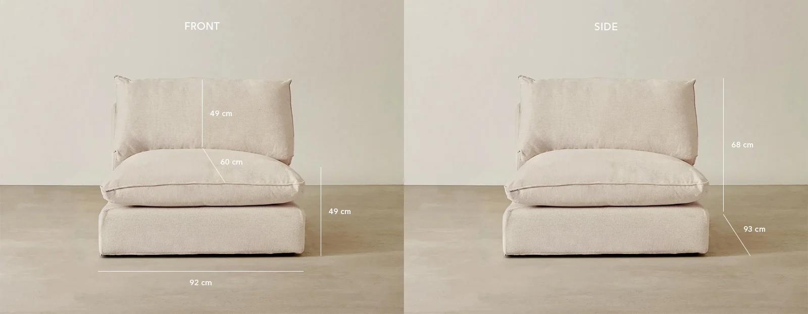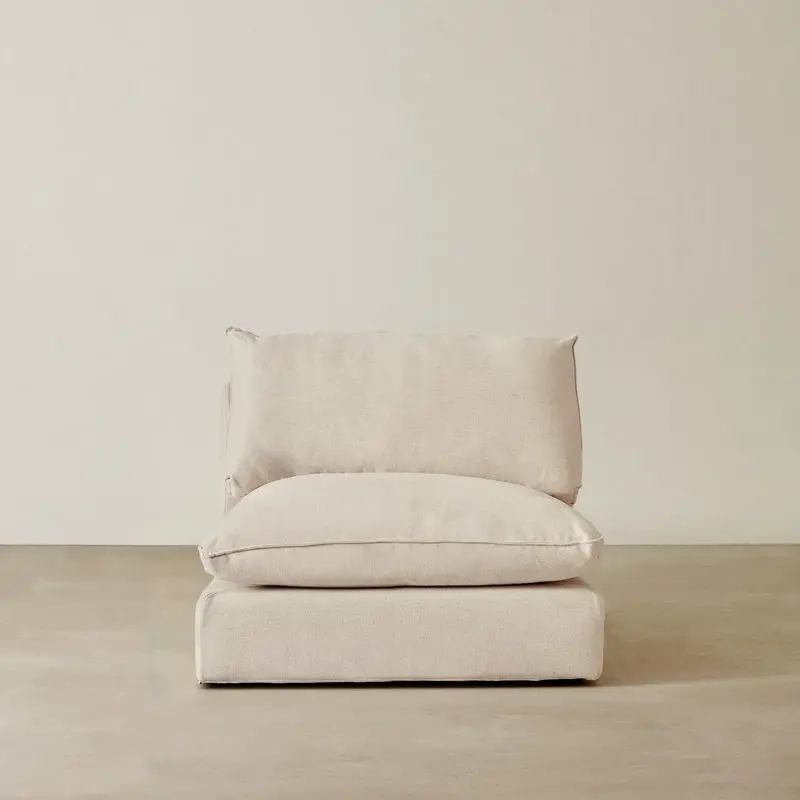 Plush cushioning and soft fabric create an easy, relaxed feel that suits any modern space. Its armless design adds flexibility, letting you shape your seating to fit your room perfectly.