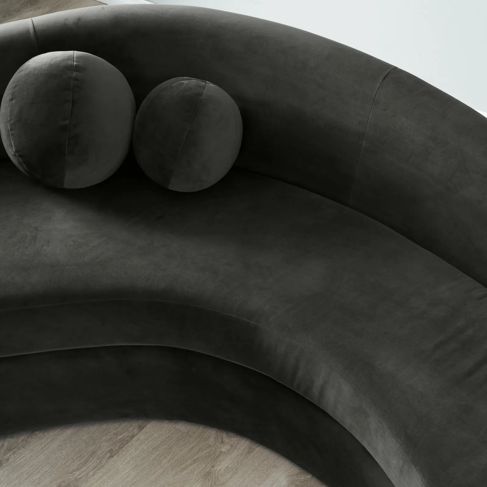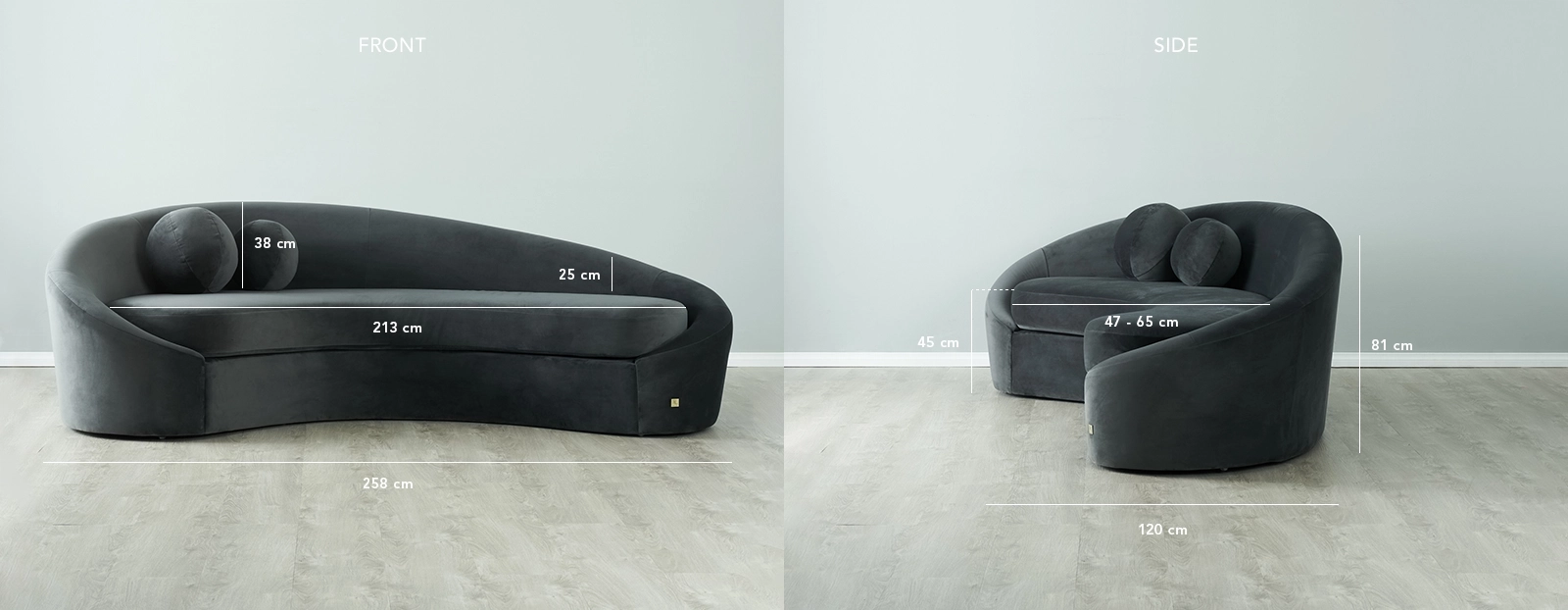 With its graceful, sweeping curves, the Maddie 3-Seater Sofa embodies sleek modern comfort. Draped in a heavenly hue of Charcoal Velvet fabric, it promises to envelop you in plush luxury.